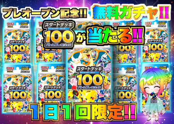全てポケモンポケモン(BOX)ドラゴンボールワンピースホビーコラボその他 2026-01-05 23:59:59まで ラインナップ(一部)詳細10101010 65/1回 残12706 / 12760 1回ガチャ 10連ガチャ 100連ガチャ 2026-01-05 23:59:59まで ラインナップ(一部)詳細10 無料/1回 残808 / 1000 1回ガチャ 2026-01-05 23:59:59まで ラインナップ(一部)詳細55 無料/1回 残114 / 300 1回ガチャ 2026-01-05 23:59:59まで ラインナップ(一部)詳細1050 38/1回 残19123 / 19140 1回ガチャ 10連ガチャ 100連ガチャ 2025-12-31 23:59:59まで ラインナップ(一部)詳細10101010 76/1回 残0 / 12760 完売しました