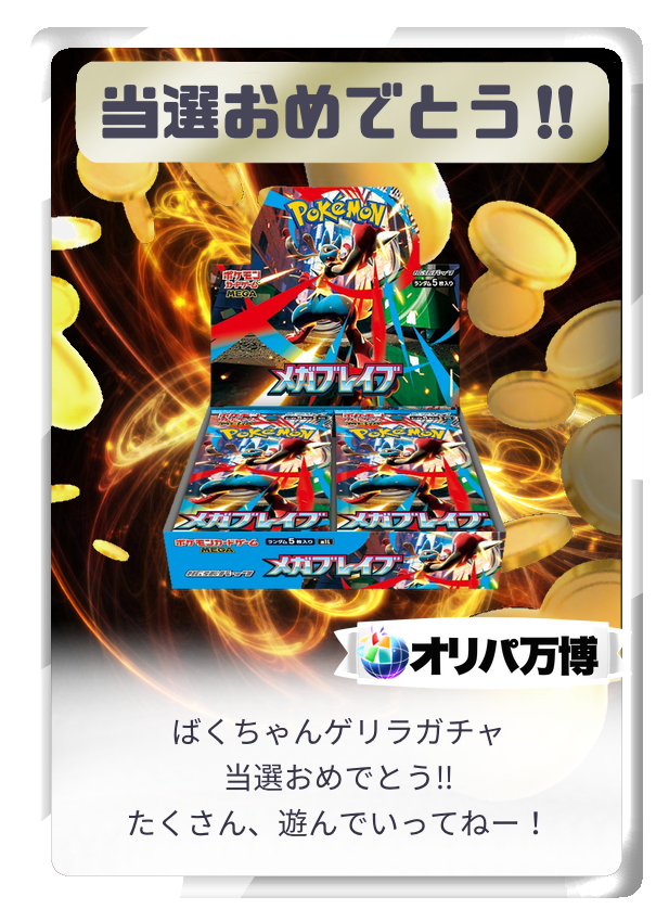 オリパには、傷や汚れがあるカードが含まれる場合がございます。商品画像はあくまでイメージであり、実際のカードの状態や排出内容を保証するものではありません。掲載されていないカードも排出される可能性があります。