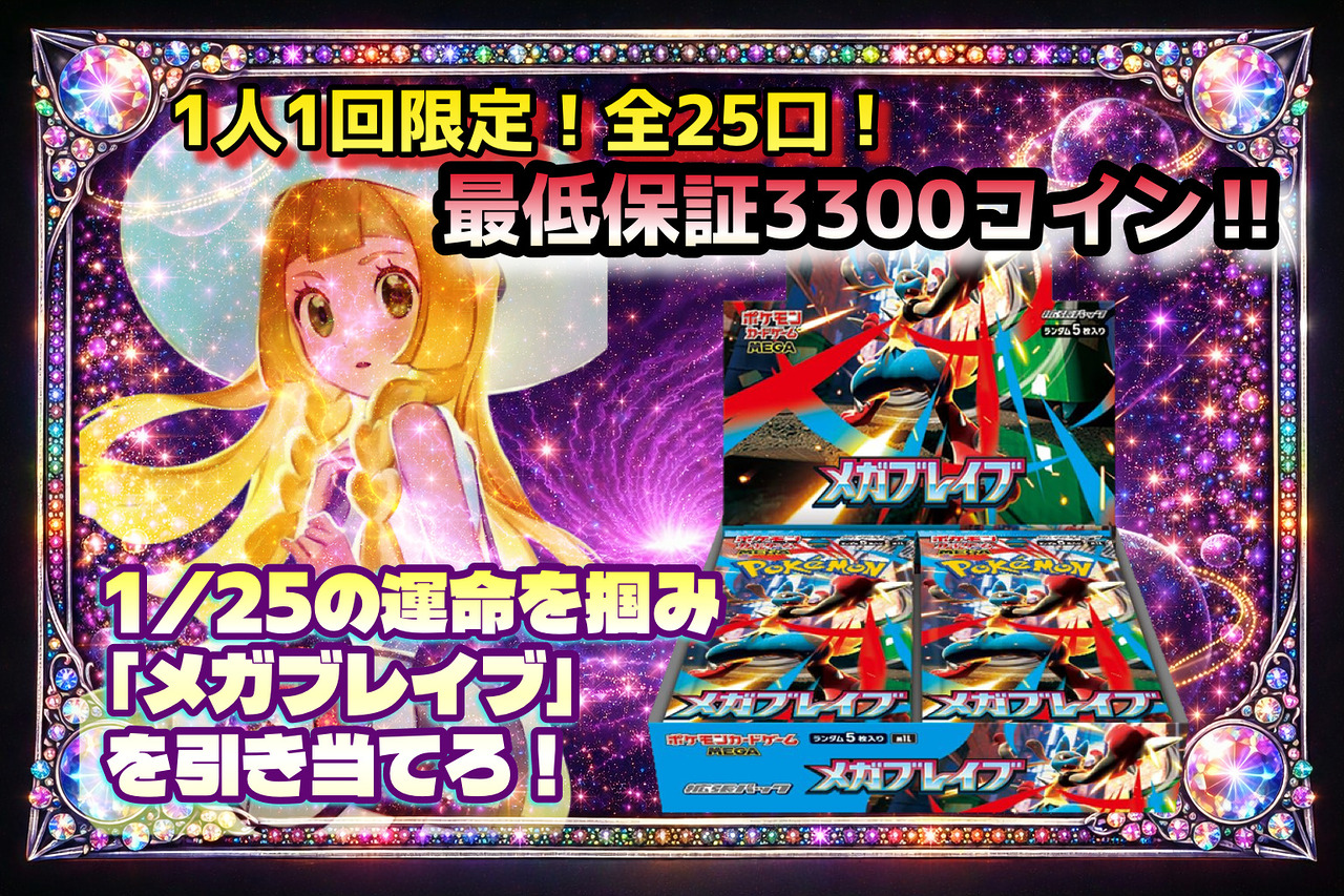 還元率はオリパをすべて購入した場合の理論値に基づき算出しておりますが、個々の抽選結果によって得られるカードの設定コイン額はランダムであり、すべての抽選で1口あたりの同等額を保証するものではありません。また、仕様上、商品に対する交換・返金はお受けできません。