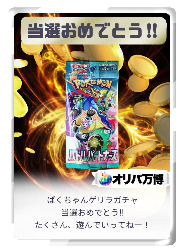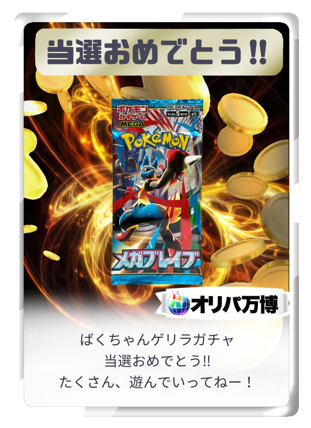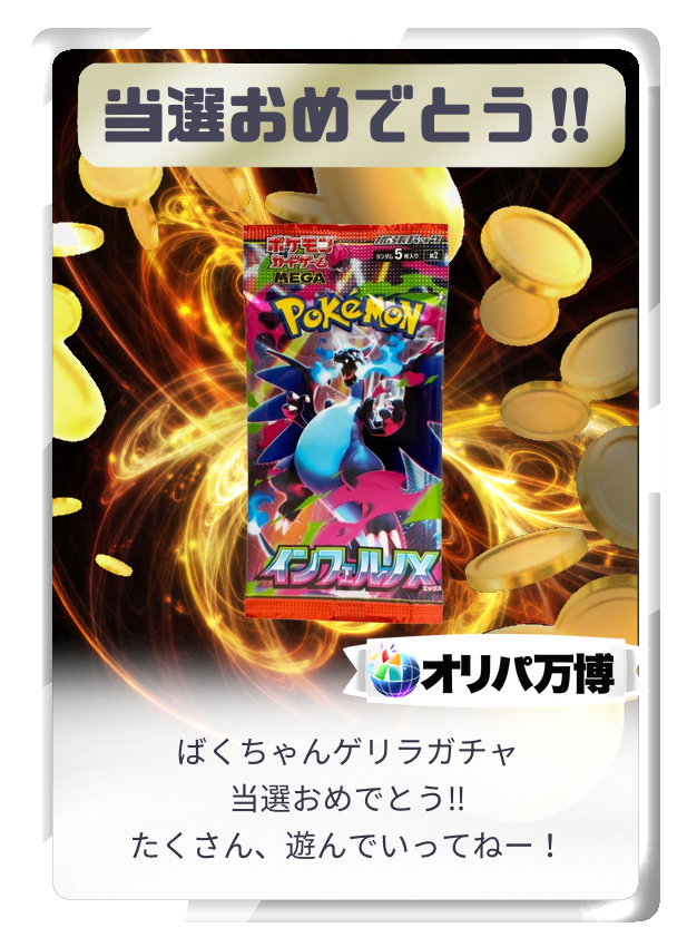 オリパ抽選時の演出は結果の等級を保証するものではありませんので、あらかじめご了承のうえご利用ください。