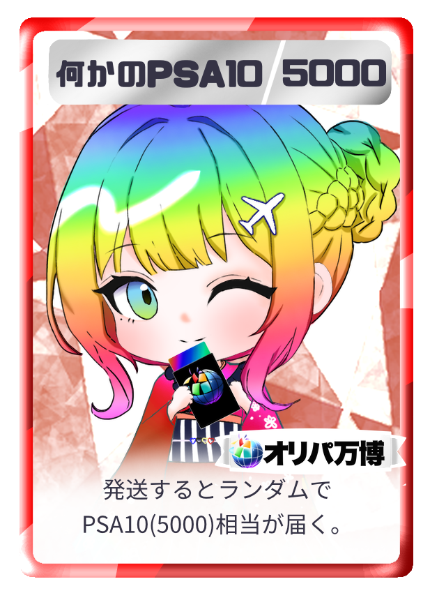 排出確率はオリパ発売時点での理論値に基づいて表示しておりますが、実際の確率は購入時点での封入状況に基づいて変動する可能性があり、表示されている排出確率を保証するものではありません。