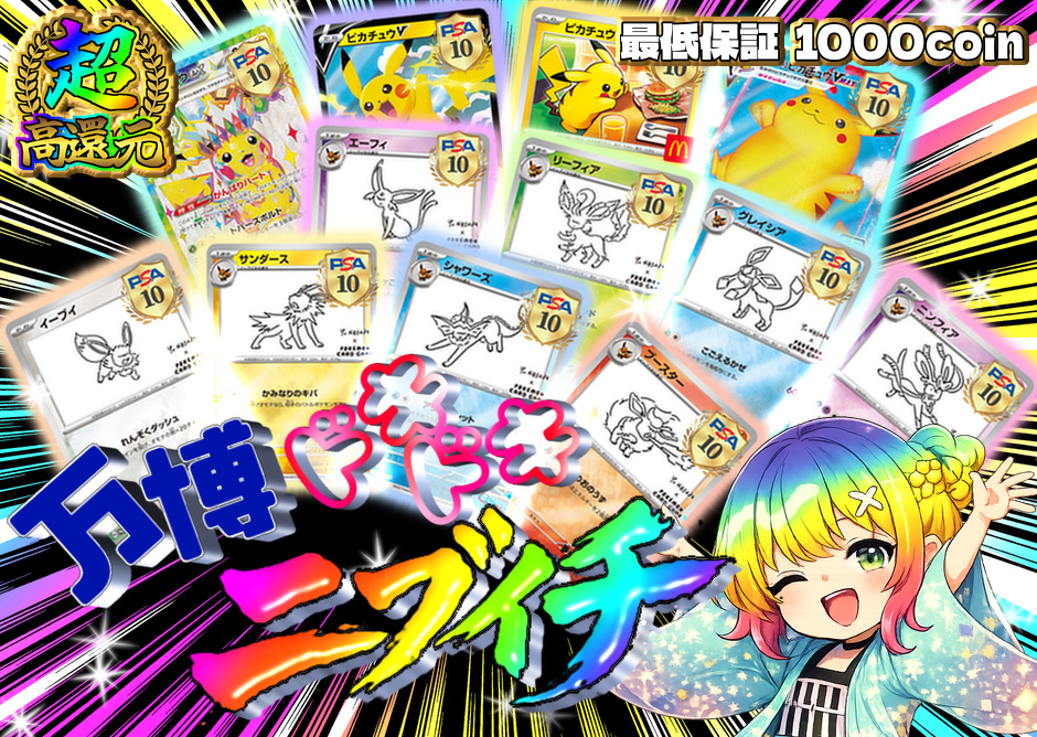 還元率はオリパをすべて購入した場合の理論値に基づき算出しておりますが、個々の抽選結果によって得られるカードの設定コイン額はランダムであり、すべての抽選で1口あたりの同等額を保証するものではありません。また、仕様上、商品に対する交換・返金はお受けできません。