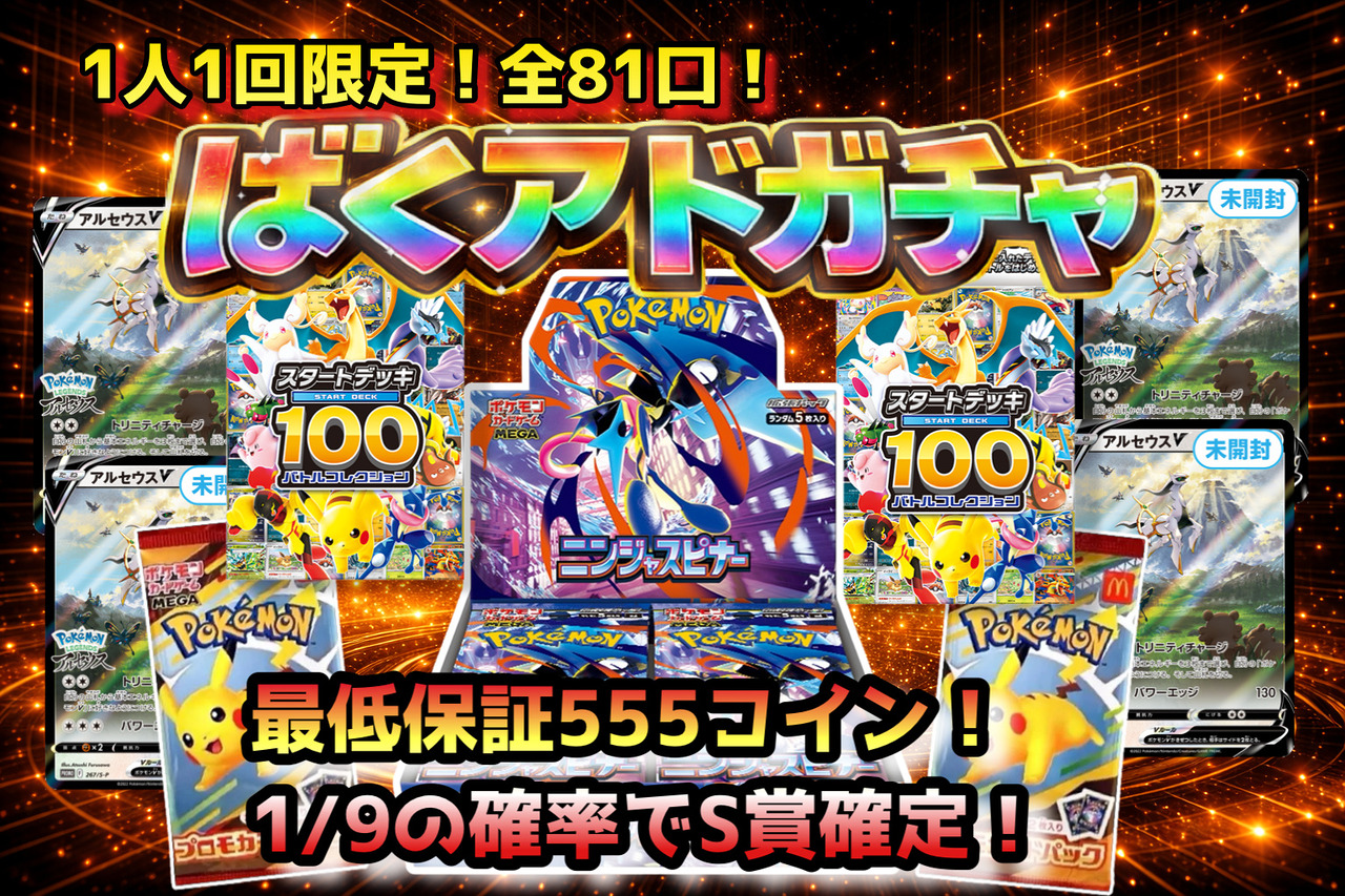還元率はオリパをすべて購入した場合の理論値に基づき算出しておりますが、個々の抽選結果によって得られるカードの設定コイン額はランダムであり、すべての抽選で1口あたりの同等額を保証するものではありません。また、仕様上、商品に対する交換・返金はお受けできません。
