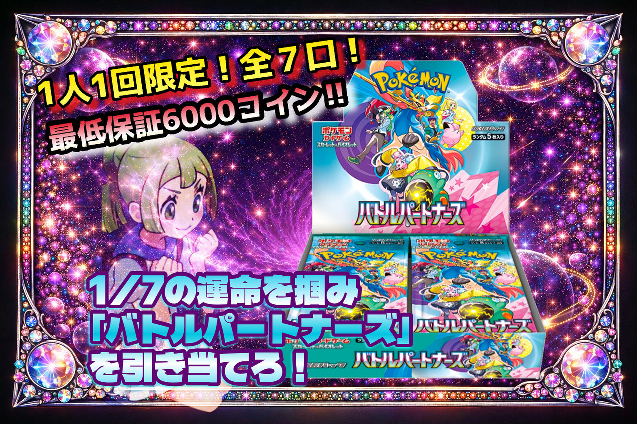 還元率はオリパをすべて購入した場合の理論値に基づき算出しておりますが、個々の抽選結果によって得られるカードの設定コイン額はランダムであり、すべての抽選で1口あたりの同等額を保証するものではありません。また、仕様上、商品に対する交換・返金はお受けできません。